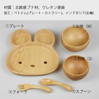 お食い初め 北欧産 ブナ 子ども食器 5点セット うさぎ プレート 汁椀 フォーク スプーン キッズ ベビー