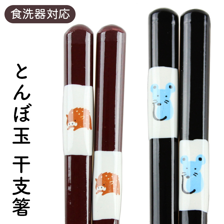 郵送で送料無料 食洗機対応 お箸 木製 とんぼ玉 干支箸(黒・赤)23cm/20.5cm 国産 若狭塗