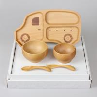お食い初め 北欧産 ブナ 子ども食器 5点セット くるま プレート 汁椀 スプーン フォーク キッズ ベビー