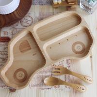彫刻名入れ お食い初め プレート&スプーン・フォーク 3点セット 選べるプレート(うさぎ・くま・くるま・くじら) 北欧産ブナ材