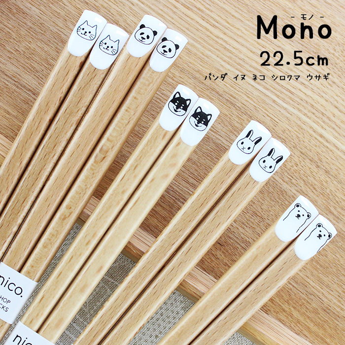 郵送で送料無料 お箸 若狭塗 22.5cm Mono 動物 天削げ お箸 国産 パンダ モノトーン 白くま うさぎ 柴犬 ねこ