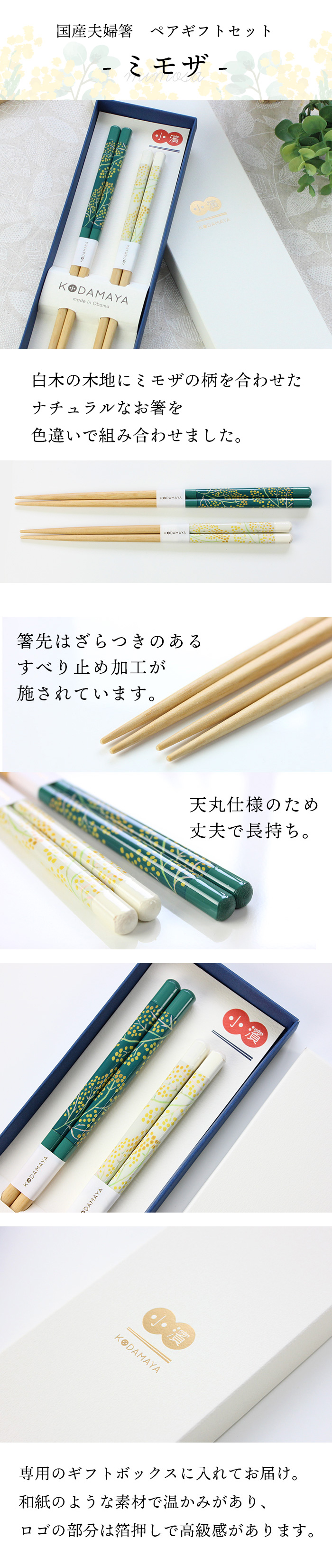 郵送で送料無料 食洗機対応 夫婦箸 ミモザ ペア 日本製 お祝い プレゼント 母の日 父の日 敬老の日 ギフトセット