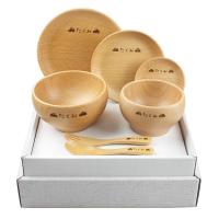 彫刻名入れ お食い初め 北欧産 ブナ 子ども食器 7点セット (プレート3枚・ボウル2点・フォーク・スプーン) キッズ ベビー