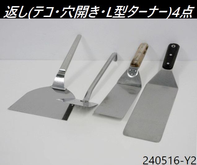 【送料別】返し4点セット◇タカヒロ,お好み焼き用テコ,大,越し金 マルタマ,穴明ターナー L型ターナーx2 ステンレス フライ返し/240516-Y2