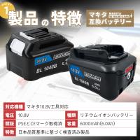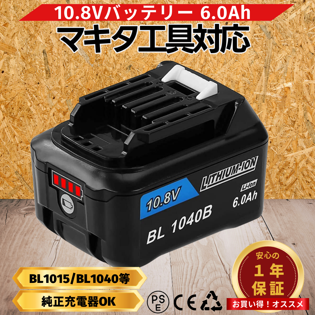 マキタ 互換品 makita バッテリー BL1040B 10.8v 6.0Ah 掃除機 残量表示付き BL1015 BL1020B BL1040B BL1050B DC10SA DC10WD 対応(BL1040B 6.0Ah 1個)