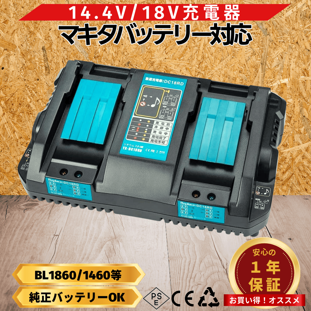 マキタ 互換品 makita DC18RD 2口 充電器 14.4v 18v バッテリー 用 DC18RC DC18RF DC18RA DC18SD BL1860B BL1460B 等対応 (DC18RD)