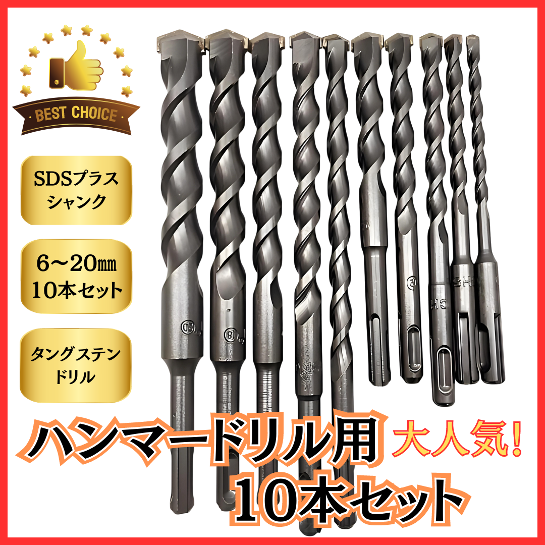 マキタ 互換品 makita コンクリート ドリル ビット ロング ハンマードリル コンクリート用 SDS プラス シャンク 穴あけ 金属 木材 刃径6-20mm 10本 (CDB1001)