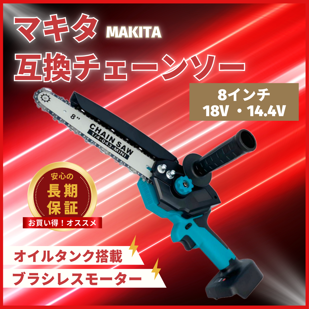 マキタ 互換品 充電式 チェーンソー 8インチ ブラシレス 小型 オイル 自動給油 コードレス 電動 のこぎり 家庭用 18V 14.4V バッテリー対応 (MCS801-BL)