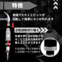 双方向回転: 正回転(R)・逆回転(L)のどちらにも対応できます。ネジ外しは(L)に合わせます。