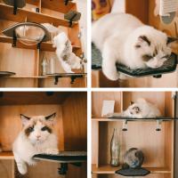猫のぷにぷにした肉球、もふもふのお腹を満喫できる透明ハンモック!&大型、小型ステップセット