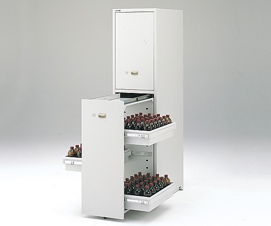 ●薬品トレーの段数を増やす事により、500mLの試薬瓶で最大168本の収納が可能です。