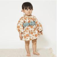 ベビー浴衣 サックス ラベンダー オレンジ 浴衣 セパレート リボン 女の子 子ども ベビー 花柄 80cm 90cm 夏 七夕祭り 花火大会 お遊戯会 RIO リトルエスティー
