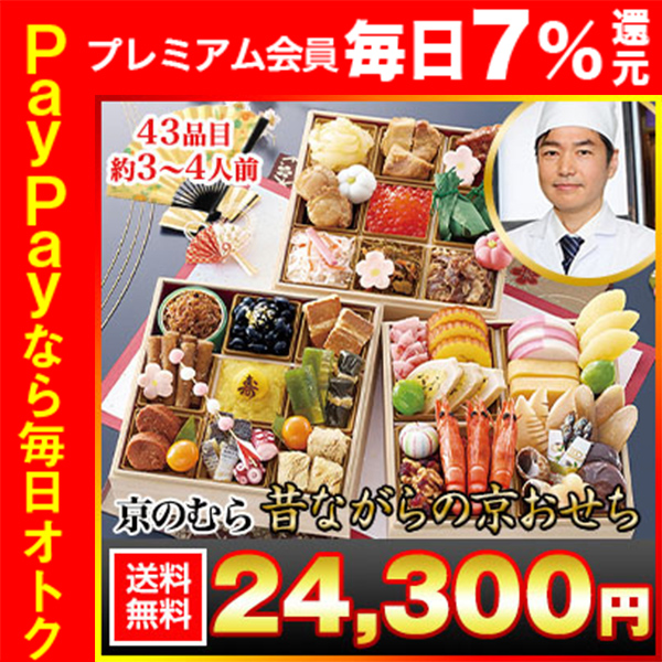 冷蔵おせち 2026 43品目 3〜4人前 「京のむら」 昔ながらの京おせち 和風おせち 御節 冷蔵 6.5寸 三段