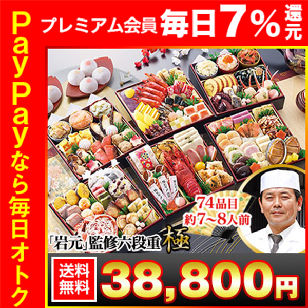 冷蔵おせち 2026 74品目 7〜8人前 京都祇園 料亭「岩元」監修六段重 極 桜大福付き 和風おせち 御節 冷蔵 6.5寸 六段