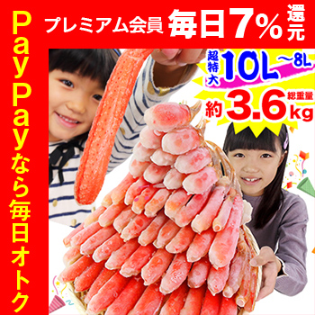 | 商品名 | 超特大10L〜8L生ずわい蟹半むき身満足セット 3kg超(総重量約3.6kg) |