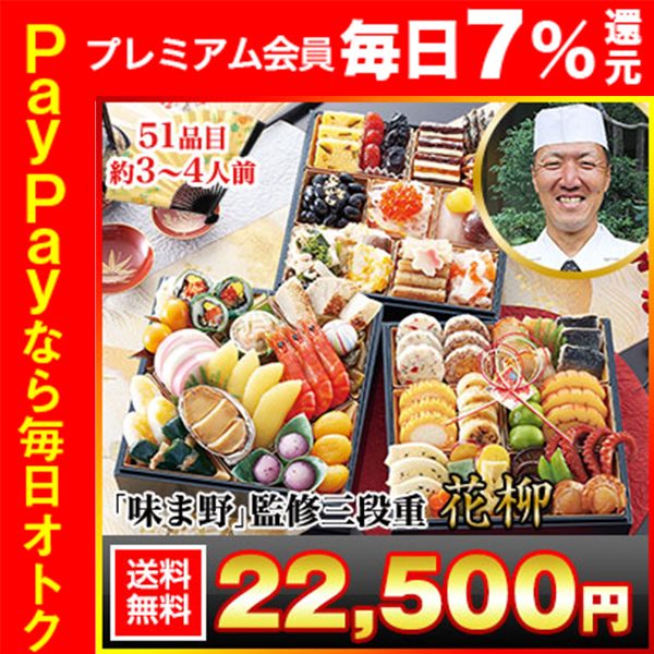 冷蔵おせち 2026 51品目 3〜4人前 京都岡崎 京料理「味ま野」監修おせち 花柳 和風おせち 御節 冷蔵 6.5寸 三段