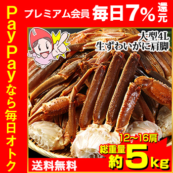 | 商品名 | 大型4L生ずわいがに肩脚12〜16肩(総重量約5kg) |