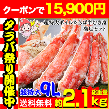 | 商品名 | プレミアム超特大9Lボイルたらば半むき身満足セット1.8kg超(総重量約2.1kg) |