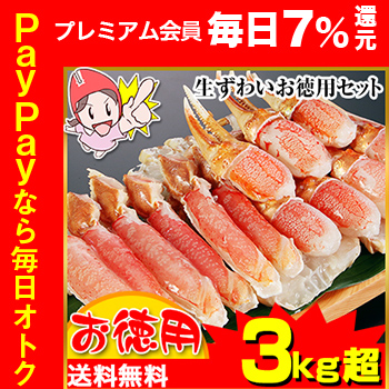 | 商品名 | 生ずわいお徳用セット 3kg超(総重量約3.6kg) |