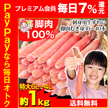 | 商品名 | 【刺身用】特大6L〜4L生ずわい脚肉むき身30〜40本(約1kg) |
