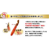 | 解凍時間 | 食べる直前に必要な量だけ流水で解凍してください。【注意】冷蔵庫や常温で数時間放置するとカニが黒変する場合がございます。 |