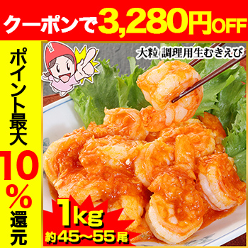 | 商品名 | 大粒 調理用ぷりぷり生むきえび1kg(約45〜55尾) |