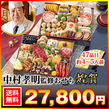 冷蔵おせち 2026 47品目 4~5人前 「中村孝明」監修おせち 煌賀 和風おせち 御節 冷蔵 長方形 特大二段重