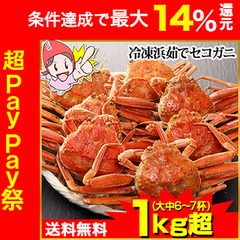 | 商品名 | 【境港厳選】冷凍浜茹でセコガニ 大中6〜7杯(1kg超) 松葉ガニメス |