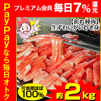 かに カニ 蟹 ズワイガニ ポーション 訳あり| 【刺身可】生ずわい脚肉むき身棒肉 2kg(総重量約2.4kg