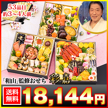 冷蔵おせち 2026 53品目 3〜4人前 京都祇園 料亭「和山」監修おせち 彩嘉 和風おせち 御節 冷蔵 三段