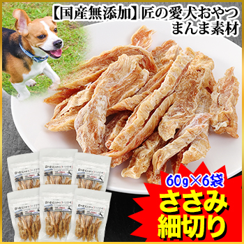 【国産無添加】匠の愛犬おやつ まんま素材 ささみ細切り60g×6袋
