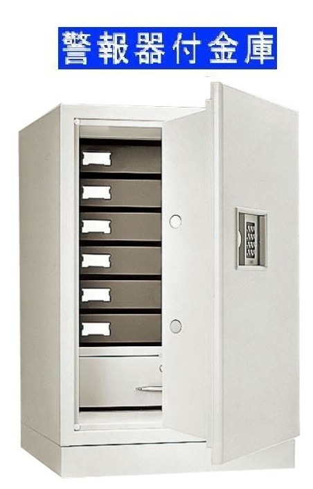 警報機付きで金庫に衝撃などを与えると警報音がなります。盗難防止などに効果的です。