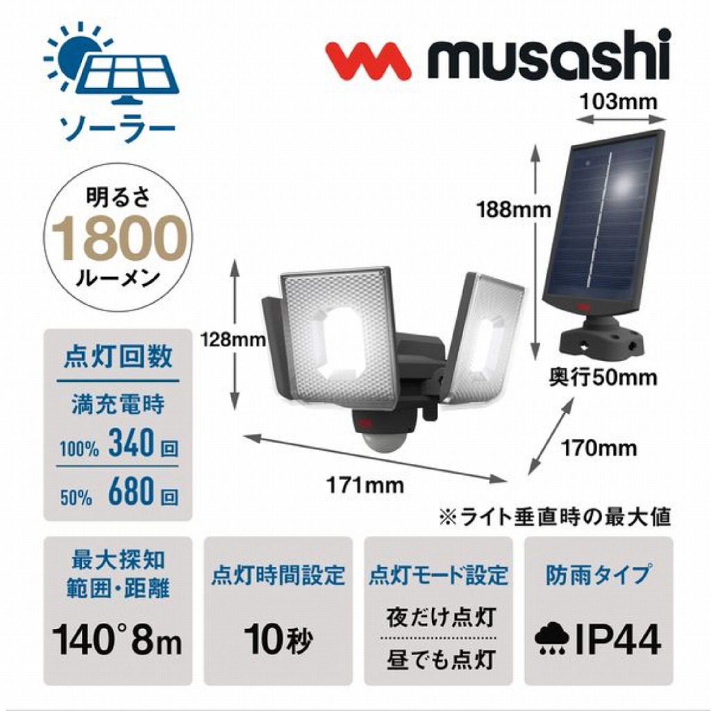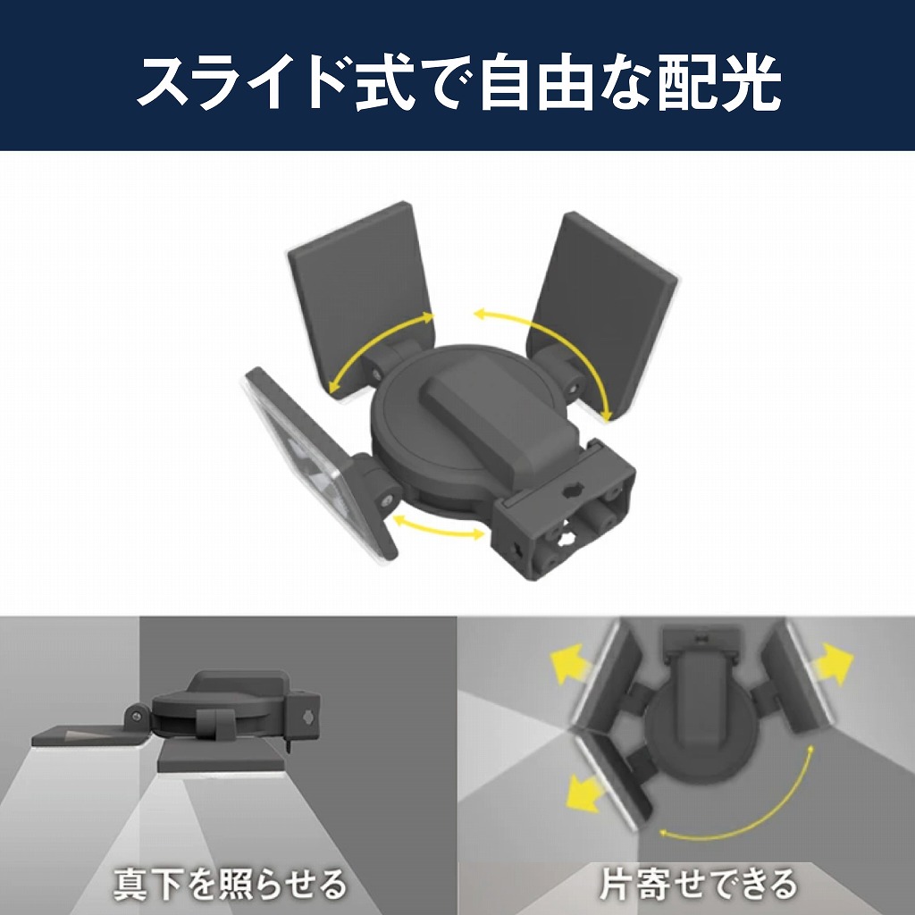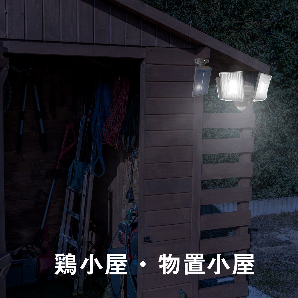 そんな「気になるエリア」を集中的に照らしたり、離れた複数のエリアもカバーできるセンサーライトです。