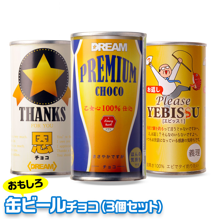 缶ビール風のユニークな缶入りチョコレート3本セット。缶の中にはクランチチョコが3個入っています。バレンタインの義理チョコ、ホワイトデーのお返しやギフトにおすすめです。