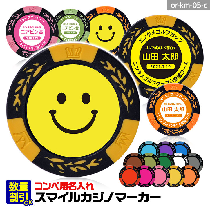 ゴルフコンペ用 名入れ スマイル カジノチップマーカー(カジノマーカー)(メール便対応可)