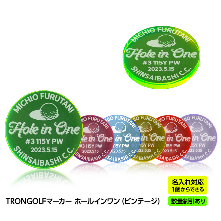 【数量割引あり】ホールインワン 記念品 お祝い 名入れ TRON GOLF マーカー(ビンテージ) トロン ゴルフ 蛍光 集光色(メール便対応可)