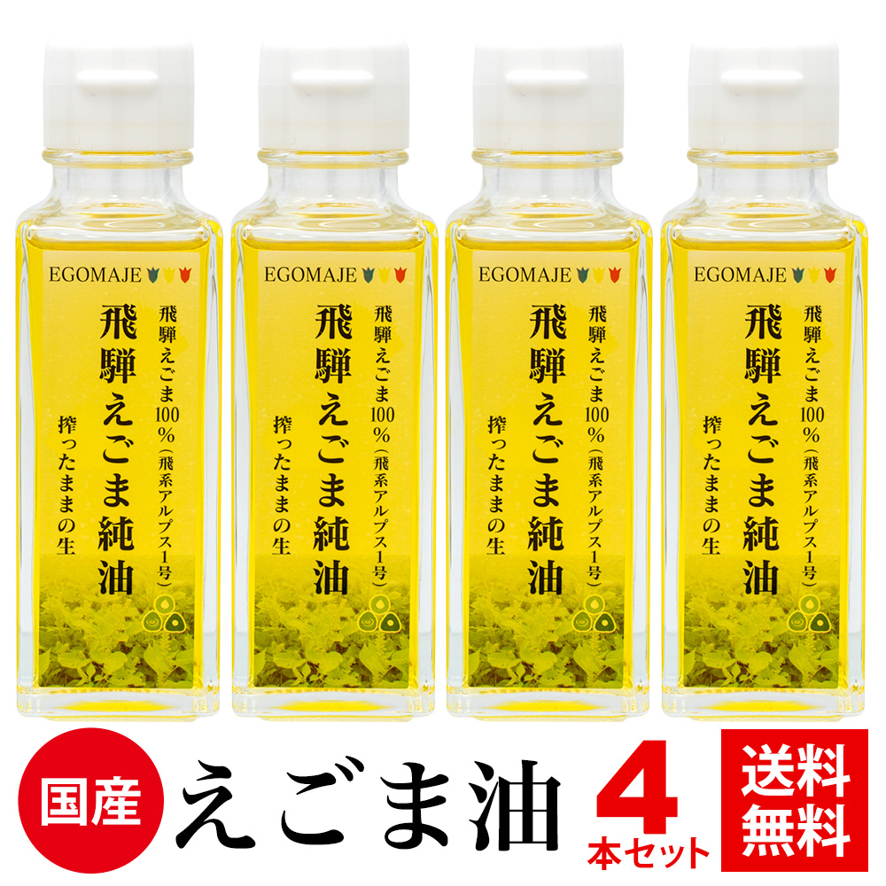 えごま油 国産 「飛騨えごま純油」4本セット 送料無料 無添加 オメガ3 αリノレン酸 DHA EPA エゴマ油 低温圧搾