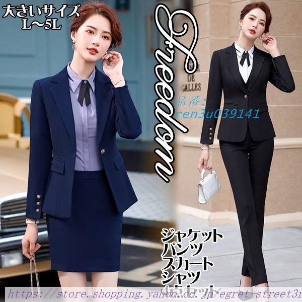 大きいサイズ スーツ OL 卒業式 入学式 ベーシックデザイン!パンツスタイル&スカートスタイルのレディーススーツ4点セット 5L 3L サイズ セール 4L