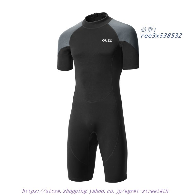 スプリング 水着メンズ ウエットスーツ 1.5MM 半袖 短パン ダイビング サーフィン 水泳 ネオプレーン バックジップ仕様 スキンダイビング