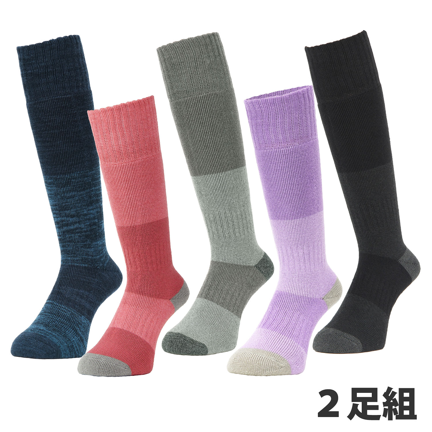 厚手で暖かい2足組みのロングソックス。