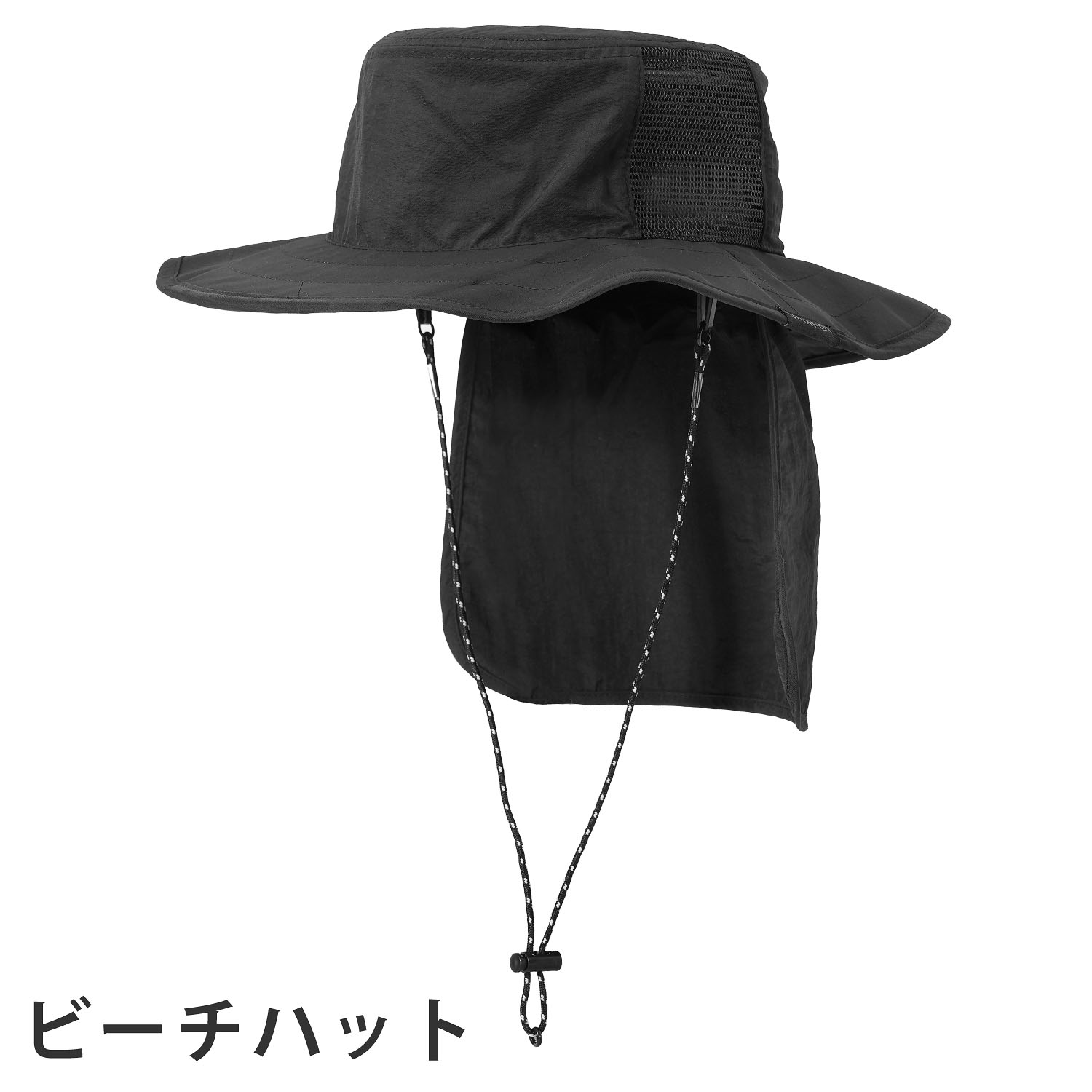 収納式のネックガード(サンシェード)がついたビーチハット。