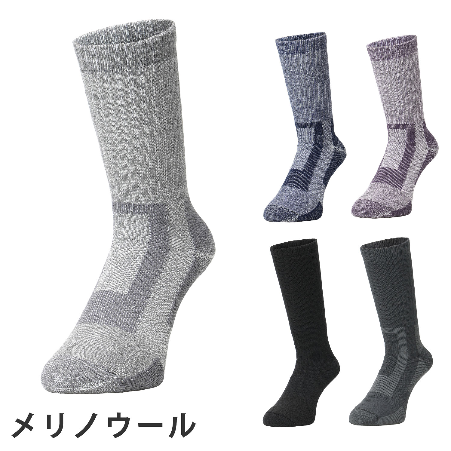 優れた機能をもつ天然素材メリノウールを使用したトレッキングソックス。
