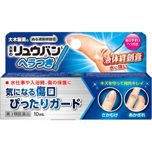 大木の流絆Sは、強い皮膜をつくって傷を守る、すぐ乾く液体ばんそうこう(流動絆創膏)です。付属のヘラに少量とり、傷に薄くぬると、一瞬しみますが乾くと治まり、透明な皮膜ができて、ばい菌の侵入を防ぎ、水やお湯などの刺激から傷を守ります。2度ぬりすると一層はがれにくくなります。毎日の水仕事などから手をいたわり、スポーツやレジャーのお供に、ご家庭や職場の常備薬として、お役立てください。