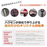 タイヤ・カゴ・グリップ・サドル・ワイヤーを自由にお選びいただける、お客様で作り上げるモデル。■カスタム内容(クリックすると別ウィンドーで画像が開きます)