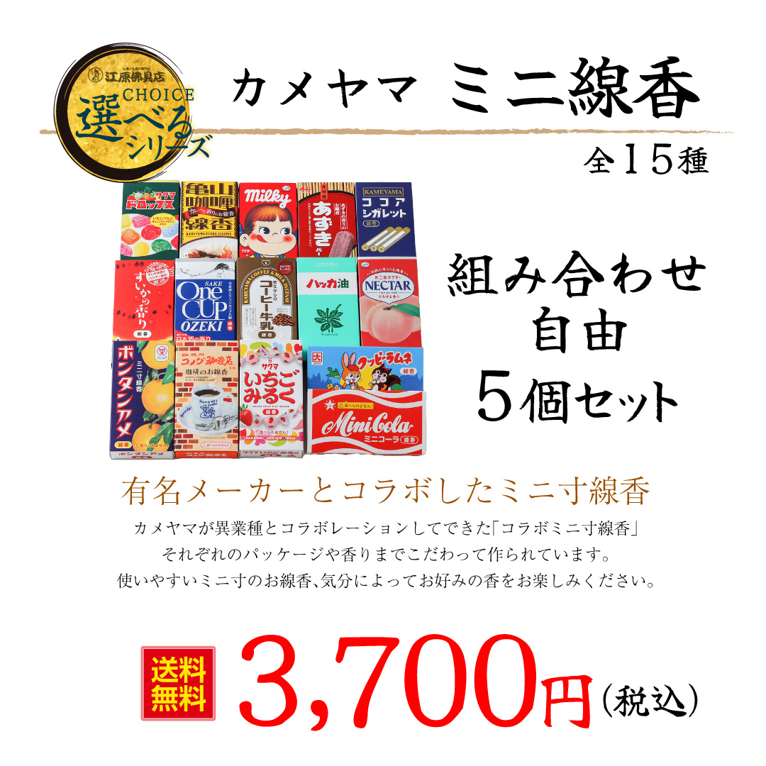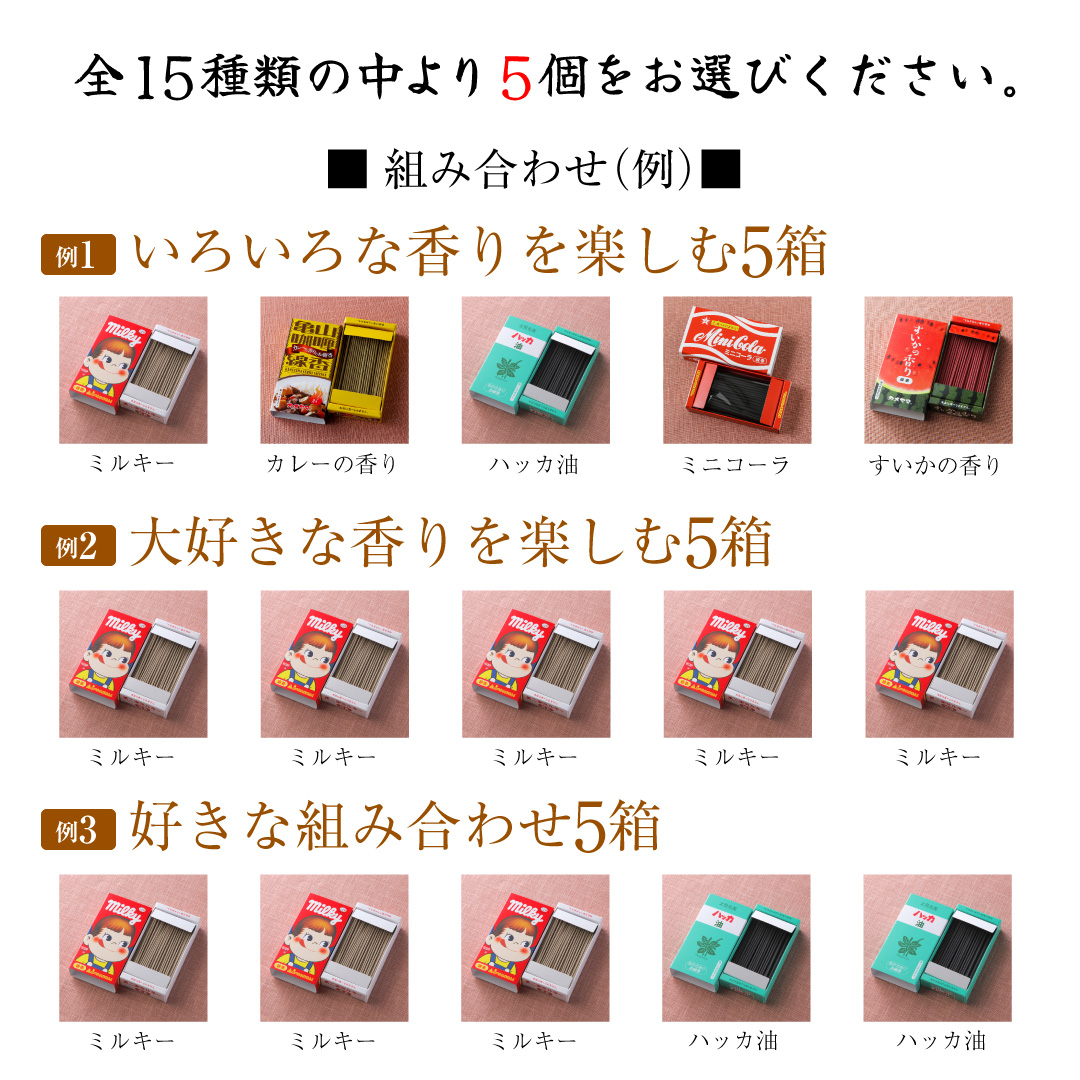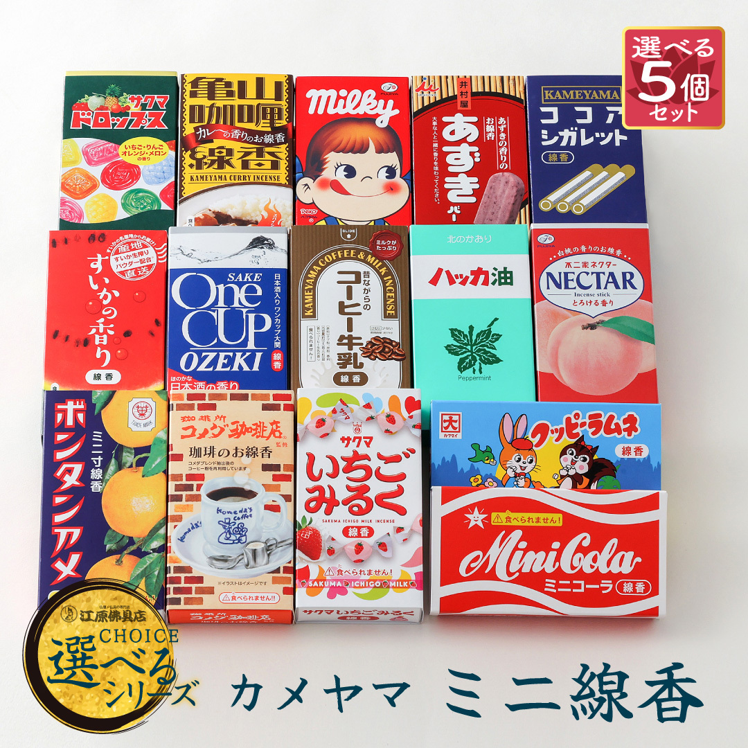 『メール便送料無料』カメヤマ ミニ線香 選べる5点set(ミルキー・イチゴミルク・ボンタン・ワンカップ・あずきバー スイカ)