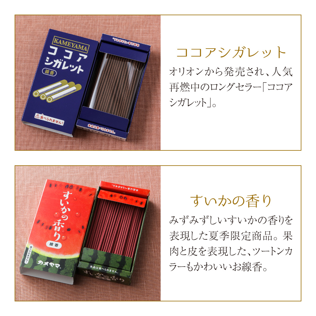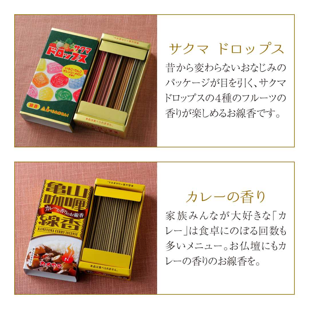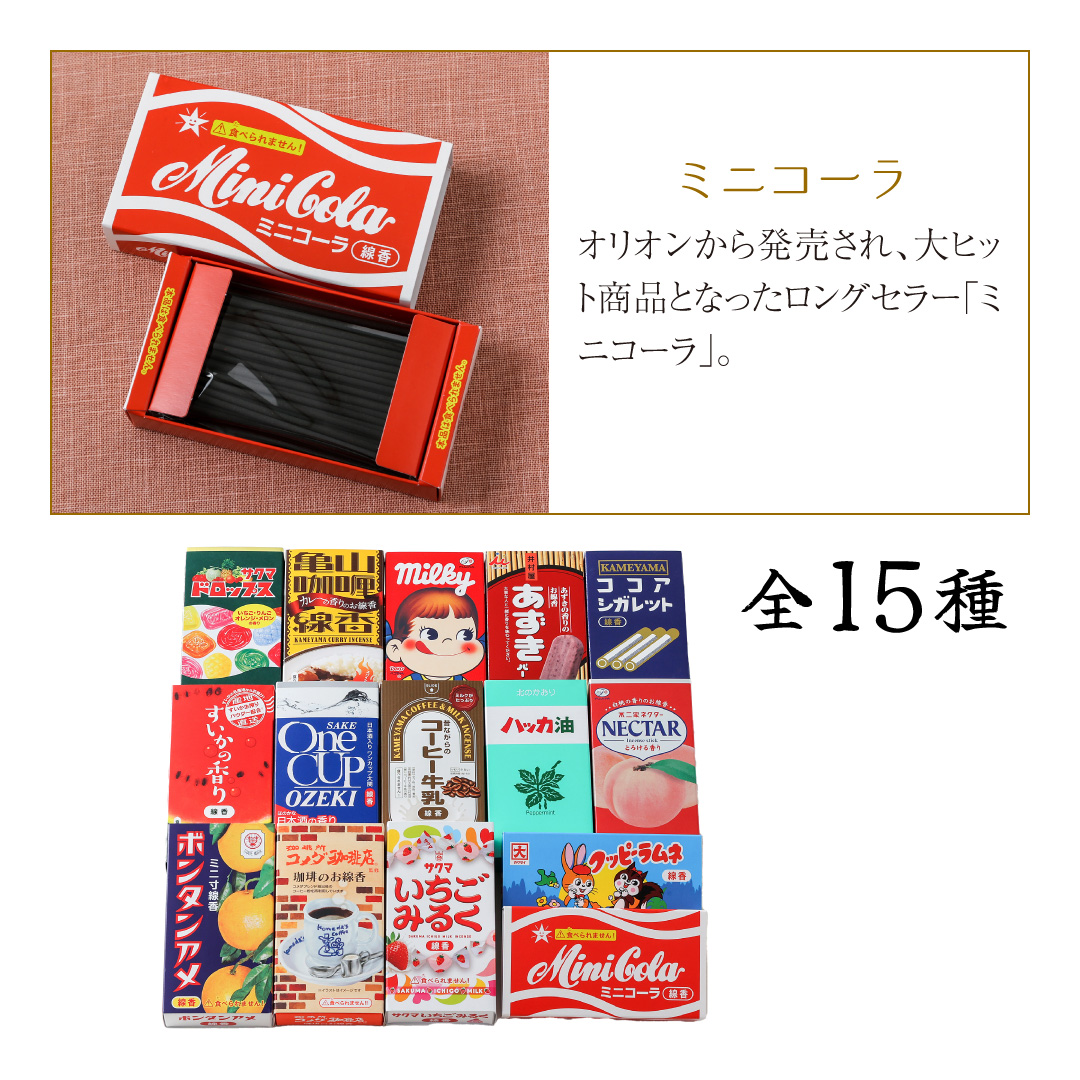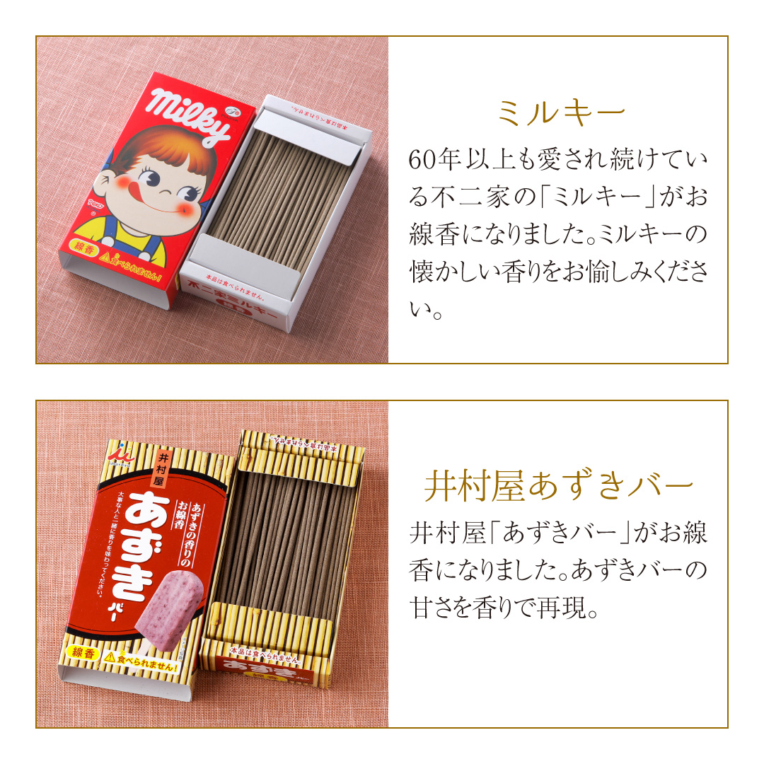 ※■ココアシガレット線香・カレーの香り線香、ミニコーラ線香、コーヒー牛乳、リラックマ、コリラックマ、夕張メロンは今季廃盤商品のため、選択できません※