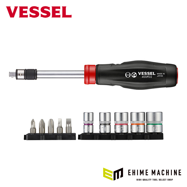 ベッセル 400PD2-1 2WAYパワードライバーセット VESSEL 6.35sq.ソケットもビットも使える2WAYドライブハンドル ビット、ソケットセット