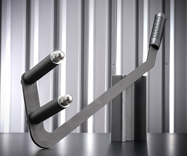 ハンドル一体型構造で、ロアアームに掛けて押すだけの簡単操作。一人作業でも安定