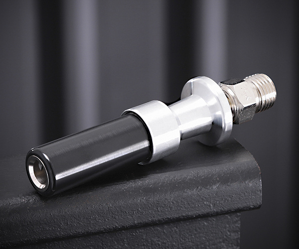 従来のクリップチャックより確実にバルブを両爪でがっちりロックし、接続後は手を離せる手放しタイプ。