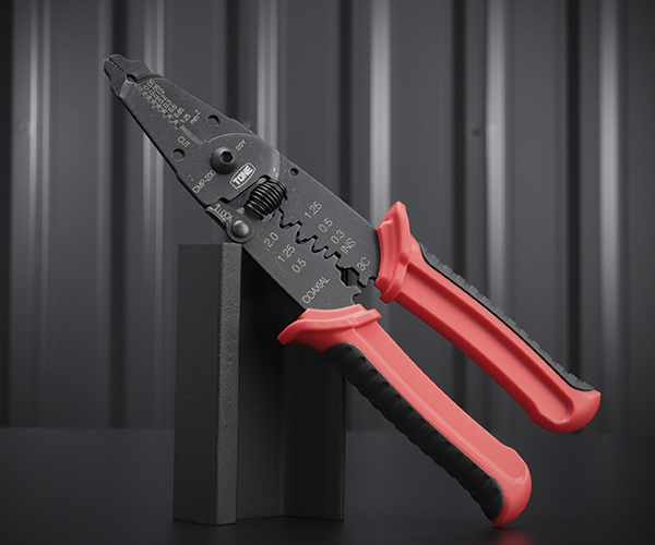 配線の切断、配線の被覆剥き、圧着端子の圧着の3役の万能電工ペンチです。
